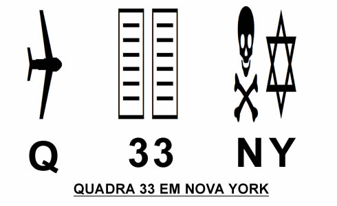 Obs: "Q 33 NY" significa QUADRA 33 EM NOVA YORK, ou seja, local onde estavam as Torres Gêmeas!